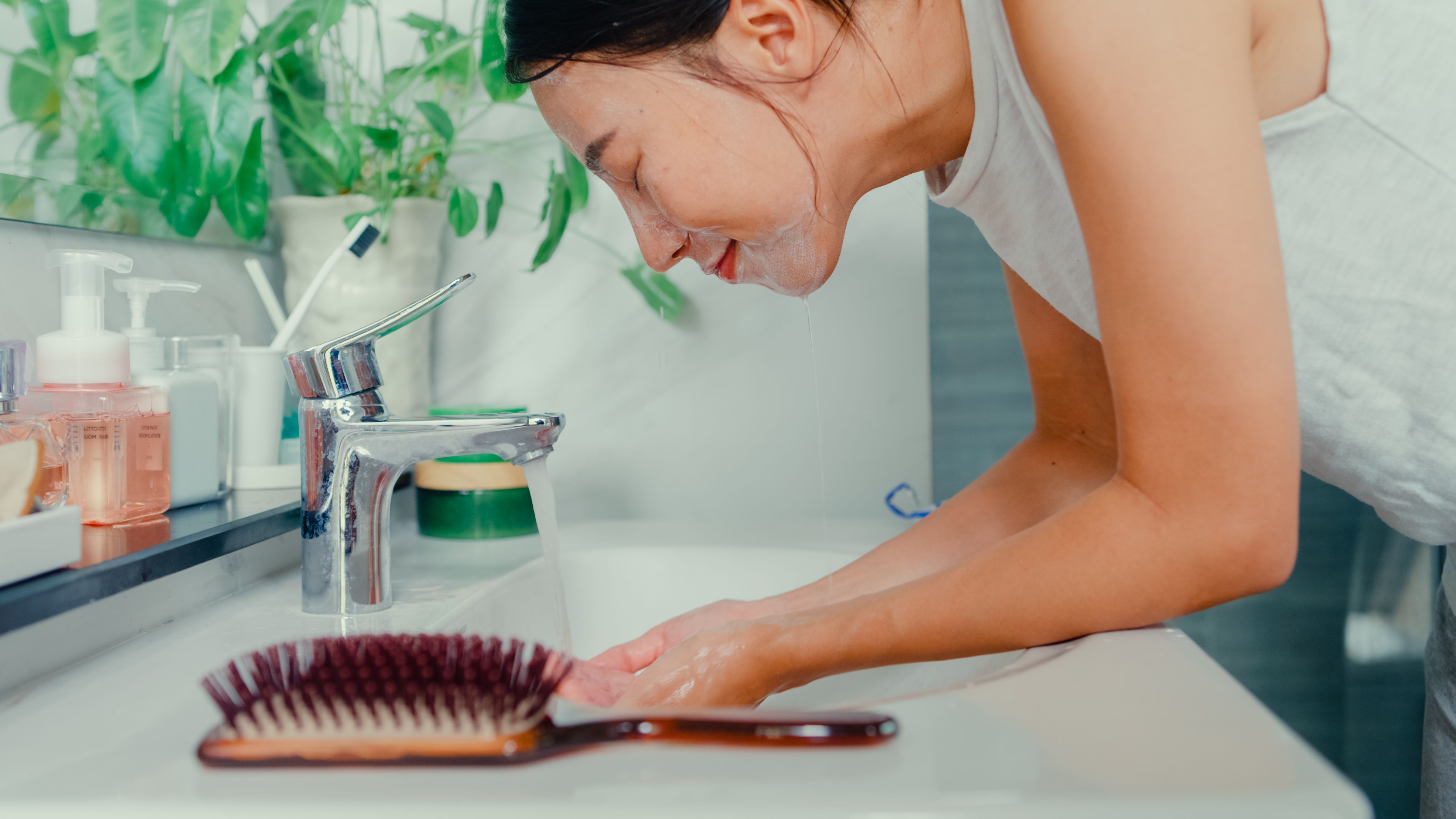 차가운 물 세안: 뜨거운 물 대신 차가운 물로 세안하여 피부의 혈관 확장을 줄이고 붉은기를 줄일 수 있습니다.