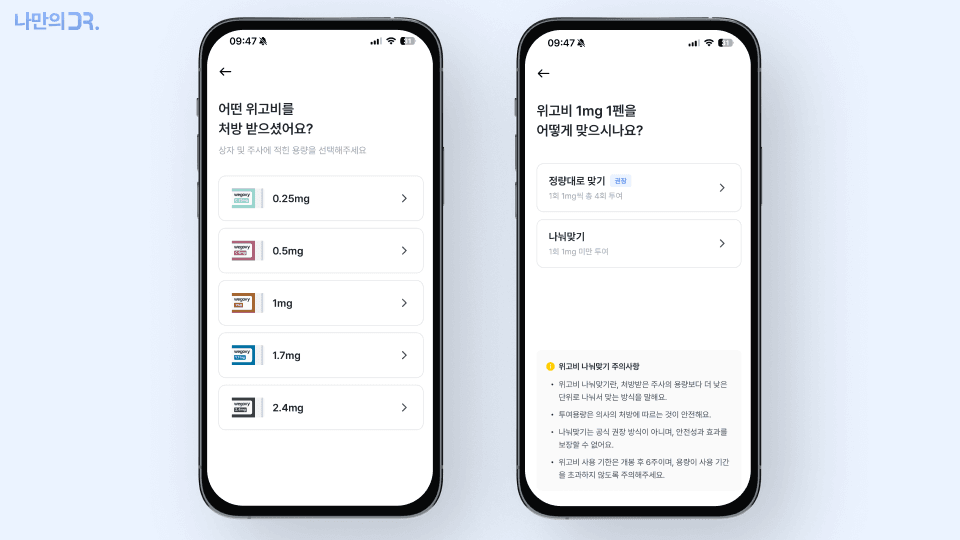 주사 날짜와 용량을 앱에 기록해두면 놓치는 날 없이 복약을 유지할 수 있습니다.
