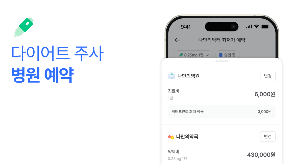 병원별 가격 비교, 지도 기반 조회, 예약까지 가능한 나만의닥터를 활용해 효율적으로 위고비 처방을 시작해보세요.