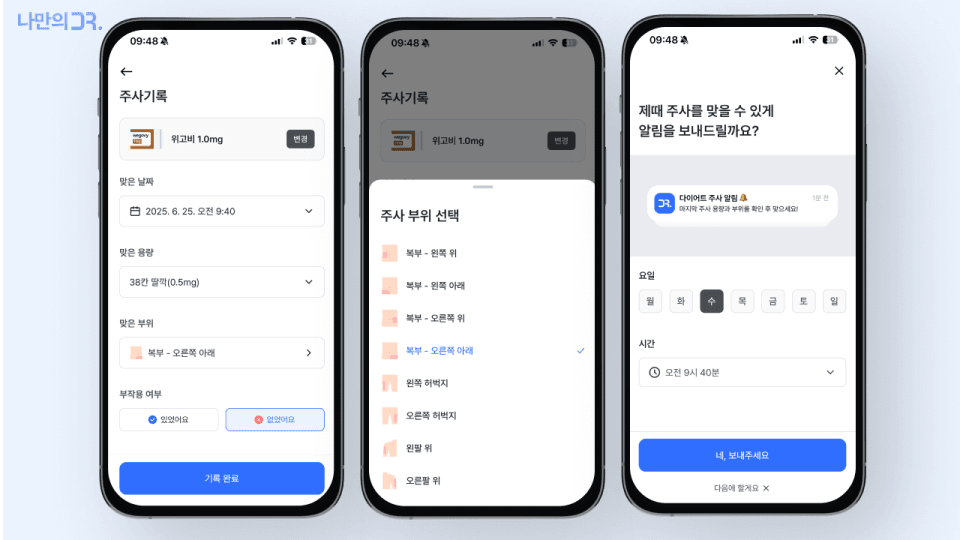 ‘나만의닥터’를 통해 위고비 복용 패턴과 부작용을 꼼꼼히 관리해보세요. 더 안정적이고 효과적인 다이어트를 이어갈 수 있습니다.