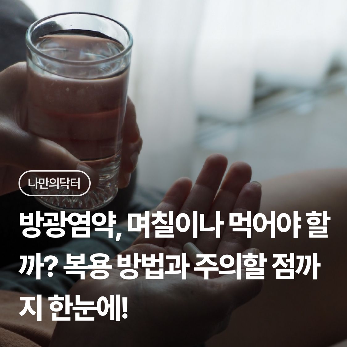 방광염 치료에 사용하는 항생제는 일반적으로 3~7일간 복용합니다.