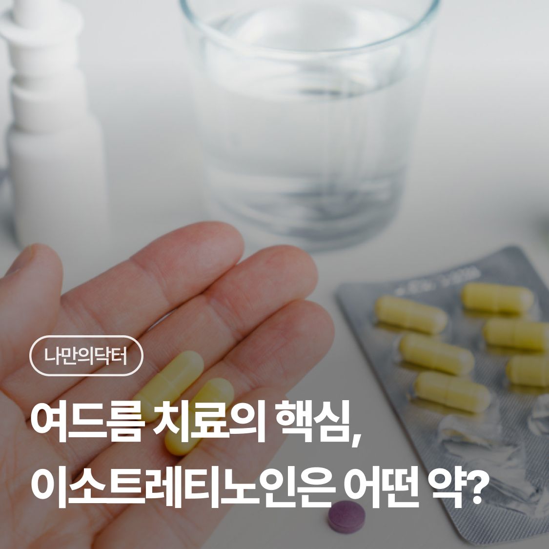 피지조절제(피지억제제)는 크림, 외용액 등 다양한 형태가 있지만, 먹는 여드름약으로도 처방되며 주로 이소트레티노인 성분의 여드름약이 처방됩니다.