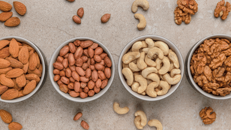 아몬드, 호두, 캐슈넛, 피스타치오, 잣 등의 견과류는 비타민 E를 풍부하게 함유하고 있습니다. 특히 아몬드와 해바라기씨 오일은 비타민 E의 주요 소스 중 하나입니다.